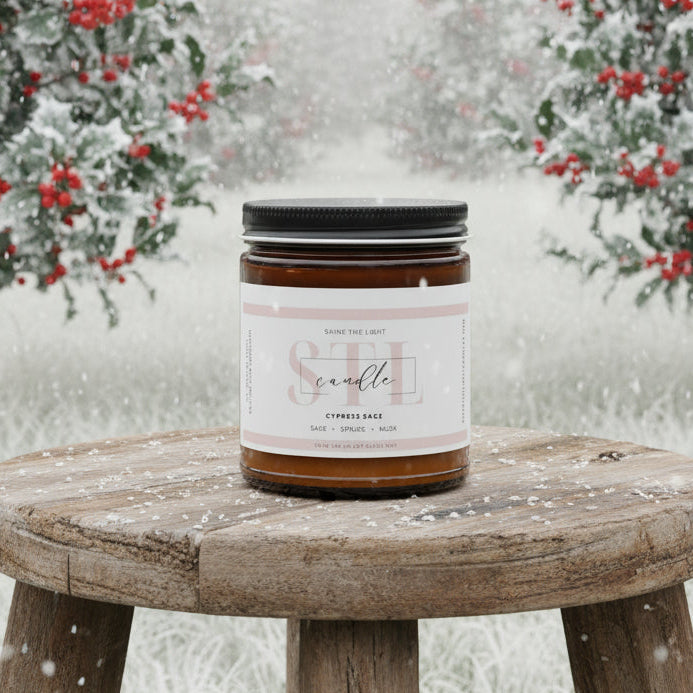 A refreshing blend of evergreen and herbal notes that captures the calm of the holiday season crisp cypress meets soothing sage for a scent that feels like peace by the fireplace.